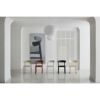 丸い天板やのびやかなカーブを描いた背もたれと、シンプルなループフレームの対比が美しいシリーズです。三次曲面に削り出された背もたれは背中を優しく包みこみ、印象的でありながら大らかな静けさをまとっています。