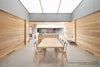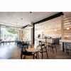 わずかに湾曲した座面は、体圧を均等に分散する硬めのクッションシート。背もたれは快適な姿勢をサポートするように角度や丸みが計算されています。ひじ掛けのないコンパクトな設計は日本の生活空間によく馴染み、座る・立つといった動作やチェアの出し入れがしやすいのも魅力の一つです。