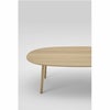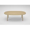 天板の下は輪郭にそって丸みがとられ、無垢の木のやわらかな印象を引き立てています。ふくよかなカーブをつけた楕円型の天板は、丸みがありながらも広い面積が取れるように設計されています。どこに座ってもお互いの顔を見ながらコミュニケーションがとれ、穏やかな暮らしの中心となるようなテーブルです。ダイニングシーンだけでなく会議机などのワークスペースにもおすすめです。
