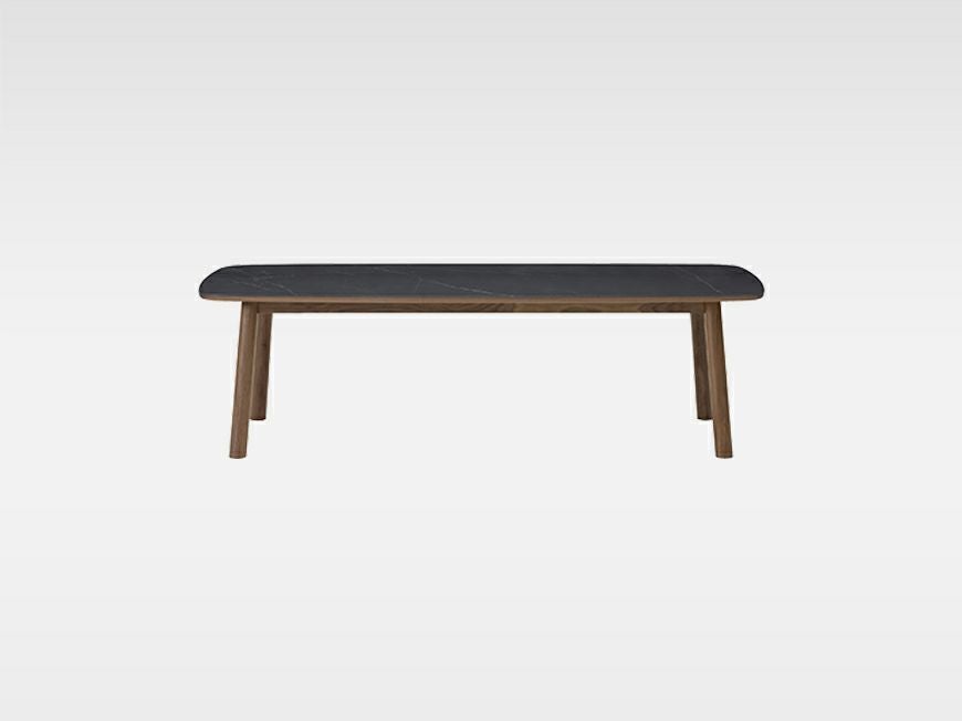 穏やかなカーブを描いたテーブルです。天板の縁はやや斜めに削ぎ落とされ、天板のかたちを浮き立たせています。 広々とした天板はどの椅子と合わせても調和がとれ、空間をやわらかな雰囲気に包みこみます。