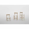 綿密に考えられた構造と高度な木工技術によって、軽さと強さの絶妙なバランスを実現しています。端を細く絞った丸棒やふっくらとした背もたれ。繊細なパーツを組み上げたこのチェアは、どこか親しみを感じる佇まいとフットワークの軽さが魅力です。