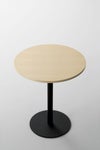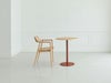 1本の支柱で丸い天板を支えるシンプルな構造で、テーブル下の空間を広くとれ座る位置を選ばずお使いいただけます。顔を合わせ囲むように座ることができるのもラウンドテーブルの魅力の一つ。スチールはブラック・グリーン・レッドから選択可能。微細な凹凸をつけたマットなカラーは、木のやわらかい質感とよく合います。