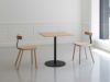 1本脚で天板を支えるシンプルな構造で、テーブル下の空間を広く使えるゆとりのある設計です。スチールはブラック・グリーン・レッドから選択可能。微細な凹凸をつけたマットなカラーは、木のやわらかい質感とよく合います。