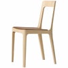 わずかに湾曲した座面は、体圧を均等に分散する硬めのクッションシート。背もたれは快適な姿勢をサポートするように角度や丸みが計算されています。ひじ掛けのないコンパクトな設計は日本の生活空間によく馴染み、座る・立つといった動作やチェアの出し入れがしやすいのも魅力の一つです。
