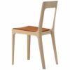 わずかに湾曲した座面は、体圧を均等に分散する硬めのクッションシート。背もたれは快適な姿勢をサポートするように角度や丸みが計算されています。ひじ掛けのないコンパクトな設計は日本の生活空間によく馴染み、座る・立つといった動作やチェアの出し入れがしやすいのも魅力の一つです。
