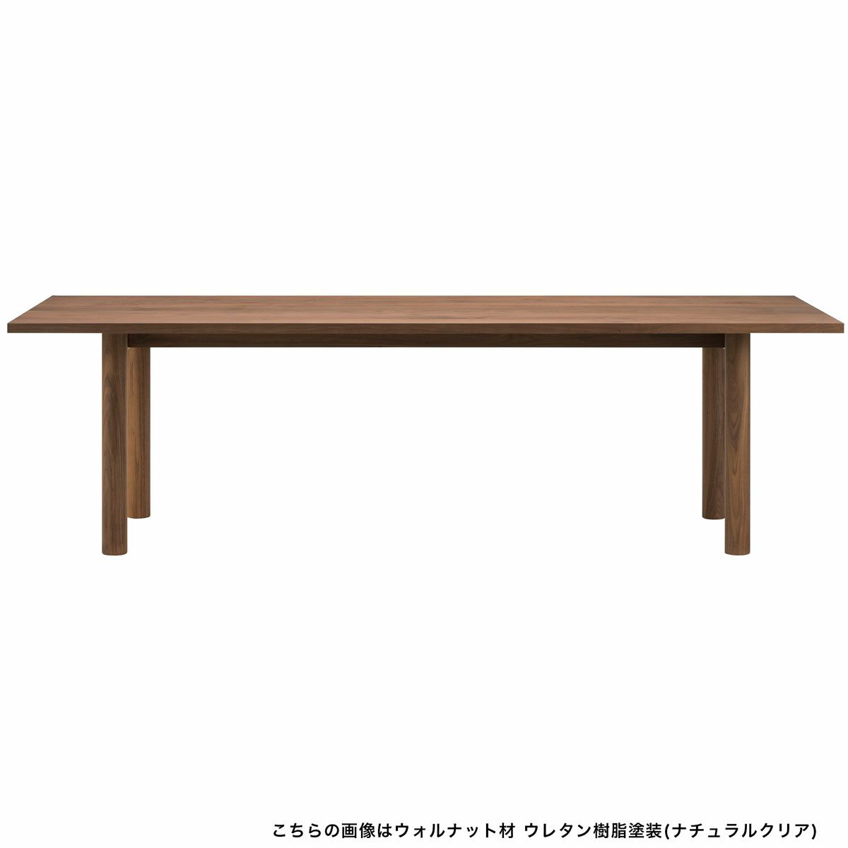 木の温もりや力強さを感じられる無垢天板のテーブルです。厚み30mmの天板とやや太い円柱の組み合わせ。シンプルなパーツで構成された安定感のあるフォルムは、そのバランスに工夫をこらして設計されています。どの椅子を合わせても調和がとれ、美しい空間をつくります。 天板は、無垢の板材を横方向にはぎ合わせています。同様の部位を繰り返して使わず、色や柄の違いをうまく組み合わせ、2つとして同じものがないように仕上げています。木のもつ豊かな表情と、使い込むほどに生まれる味わいをお楽しみください。 長手方向の幕板は天板中央部に配置されているため、テーブル下に十分なスペースがあります。ひじ掛けがついたHIROSHIMAアームチェアも、テーブル下におさめることができます。 掲載以外のサイズをご希望の方は、「✉ショップスタッフにお問合せ」よりお問い合せください。