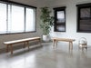 W2,100mmは、大人3人で掛けてもゆったりと座れるサイズです。 背もたれの無いベンチはどこからでも掛けられてフレキシブルな使い方が可能です。