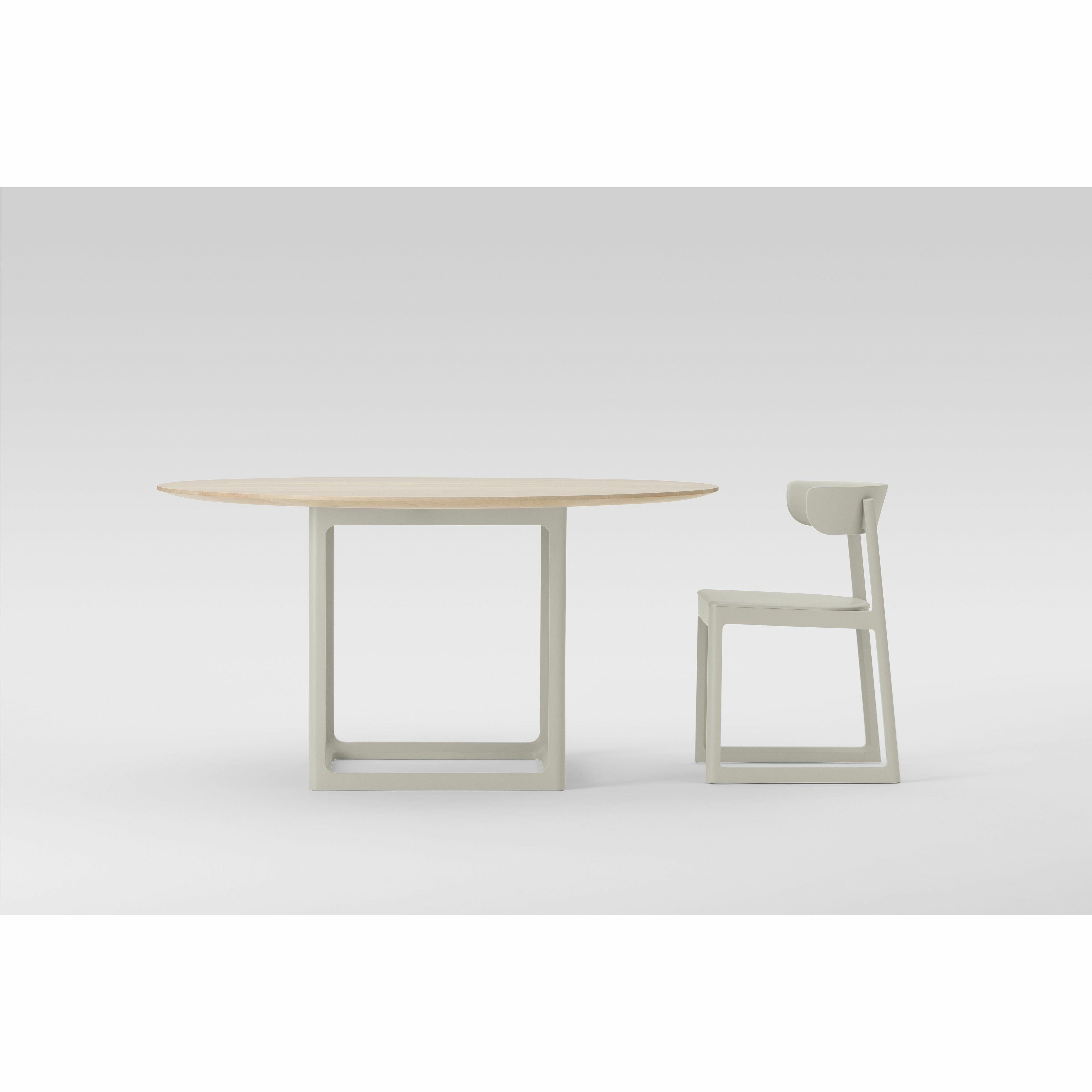 丸い天板やのびやかなカーブを描いた背もたれと、シンプルなループフレームの対比が美しいシリーズです。