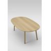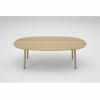 天板の下は輪郭にそって丸みがとられ、無垢の木のやわらかな印象を引き立てています。ふくよかなカーブをつけた楕円型の天板は、丸みがありながらも広い面積が取れるように設計されています。どこに座ってもお互いの顔を見ながらコミュニケーションがとれ、穏やかな暮らしの中心となるようなテーブルです。ダイニングシーンだけでなく会議机などのワークスペースにもおすすめです。