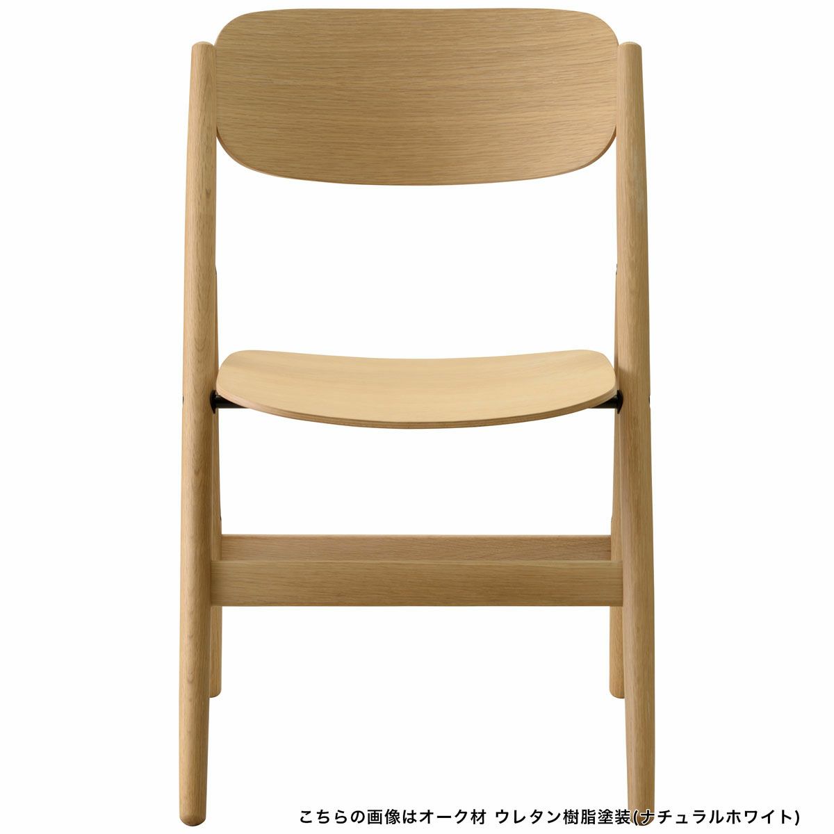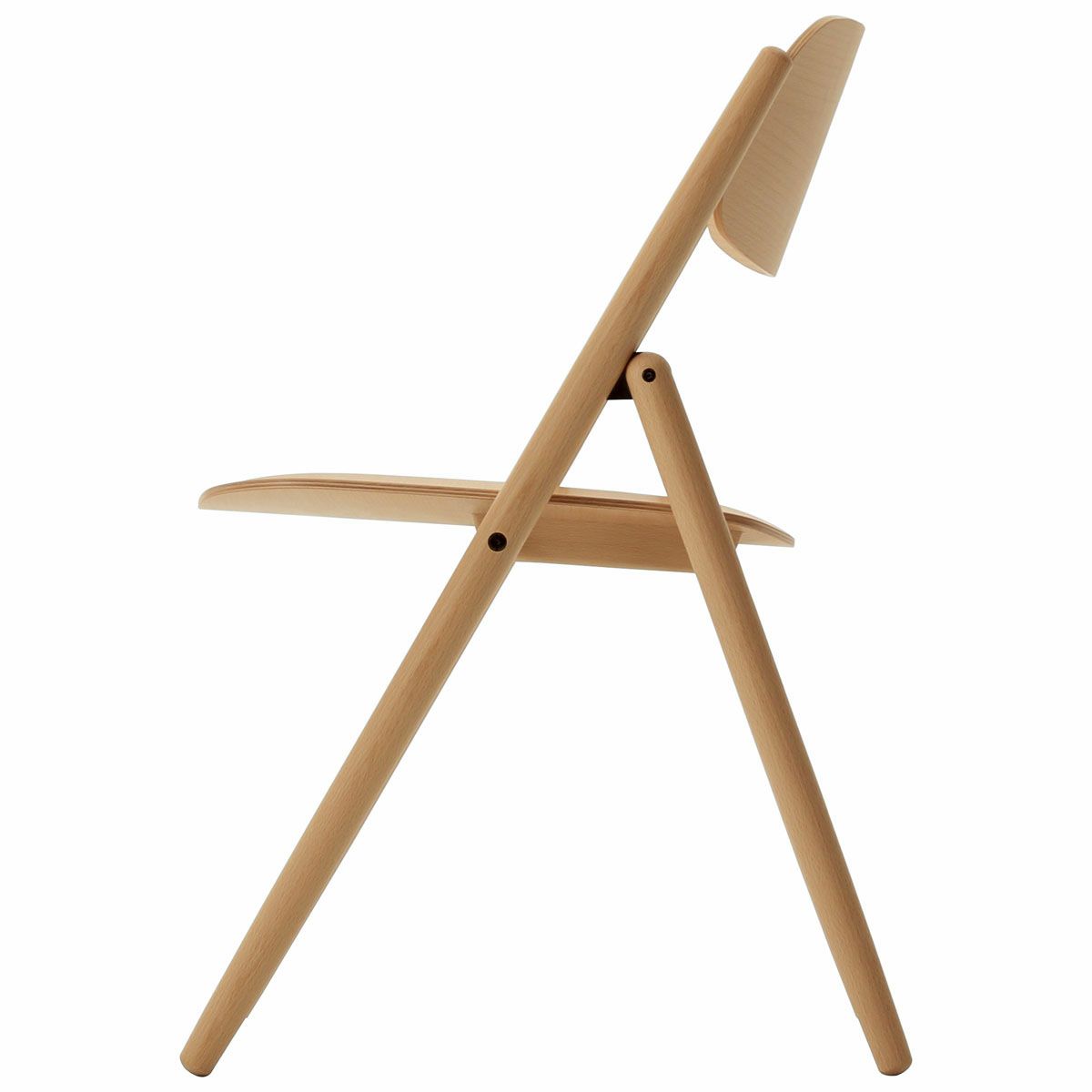 やわらかい曲線を描いた背座の板や、角を落とした丸い脚。折りたたむという機能とディテールの美しさを併せもったアイテムです。