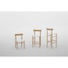 綿密に考えられた構造と高度な木工技術によって、軽さと強さの絶妙なバランスを実現しています。端を細く絞った丸棒や水平垂直なパーツの配置。繊細なディテールを積み重ねたこのスツールは、どこか親しみを感じる佇まいとフットワークの軽さが魅力です。