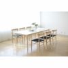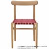 6色から選べる「ウェビングシート」には、わずかに艶のあるナイロン糸を織り合わせたテープを使用しています。強固な素材を一定の張をもたせながら編みこんだ座面は、身体の重みでわずかに沈み込む底あたりのない座り心地です。直交し合うテープの端正な表情は、木のやわらかい質感を引き締め、空間にほどよい緊張感をもたらします。