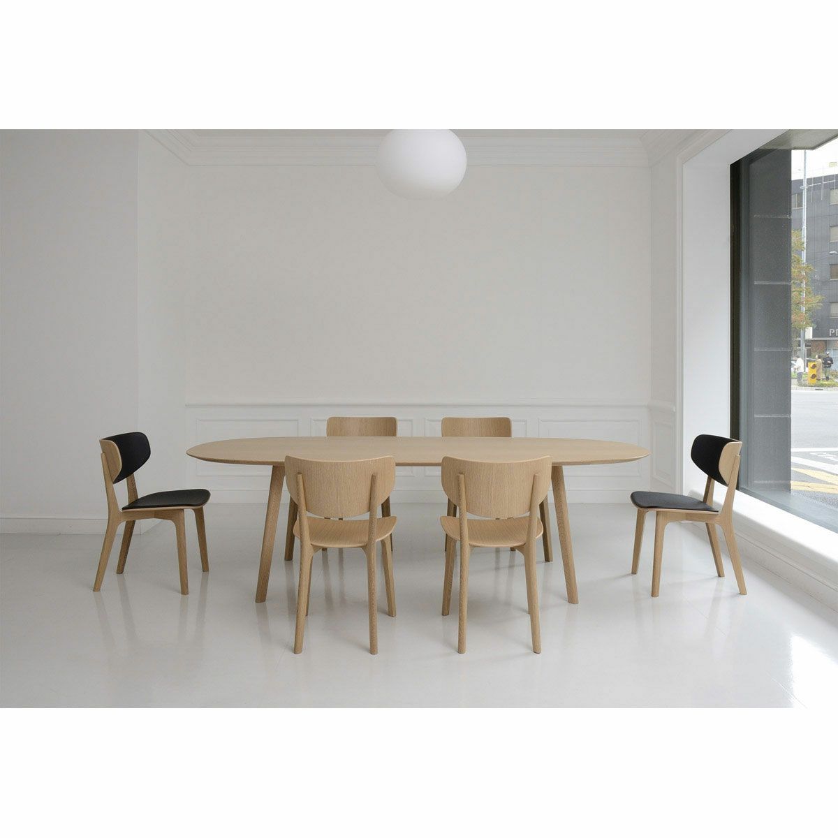 どこに触れても丸みの感じられるやわらかいフォルム。背板の曲がりと座板の輪郭は呼応するようにそろえられ、後ろから見た姿が特に美しい造形です。
