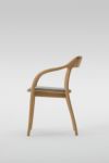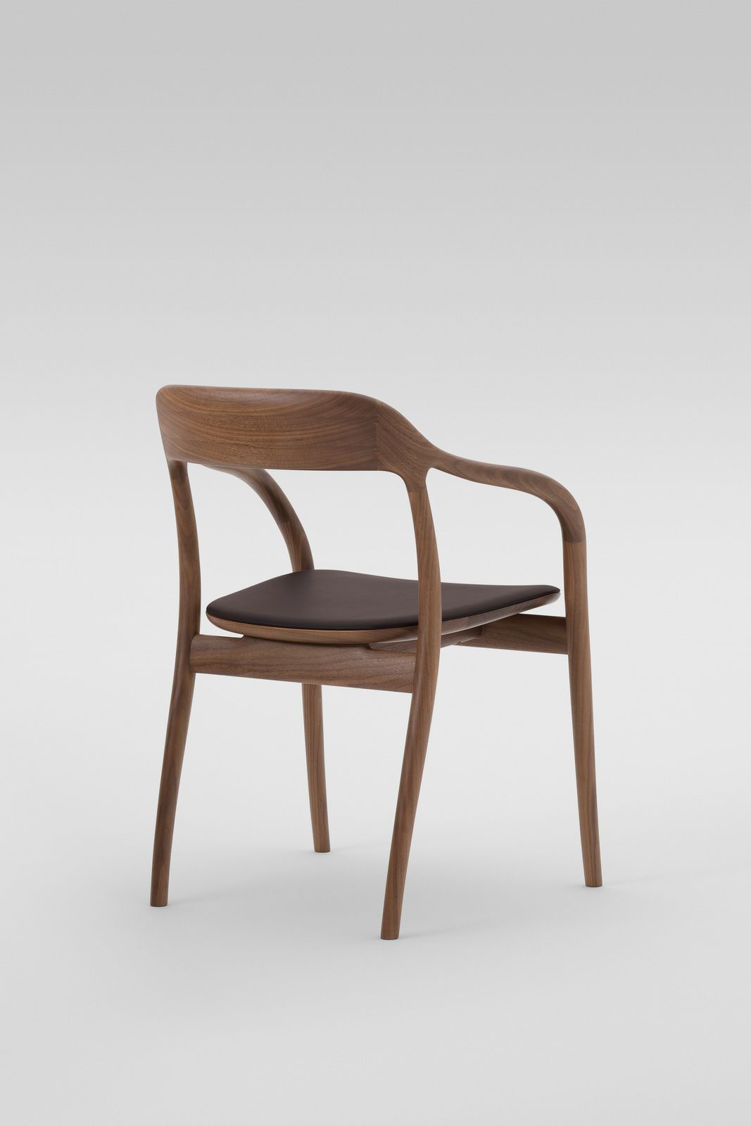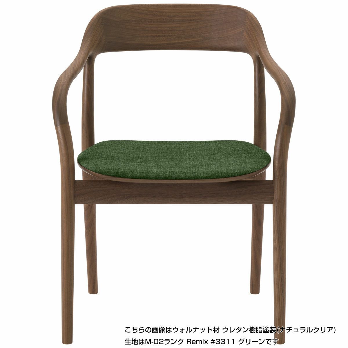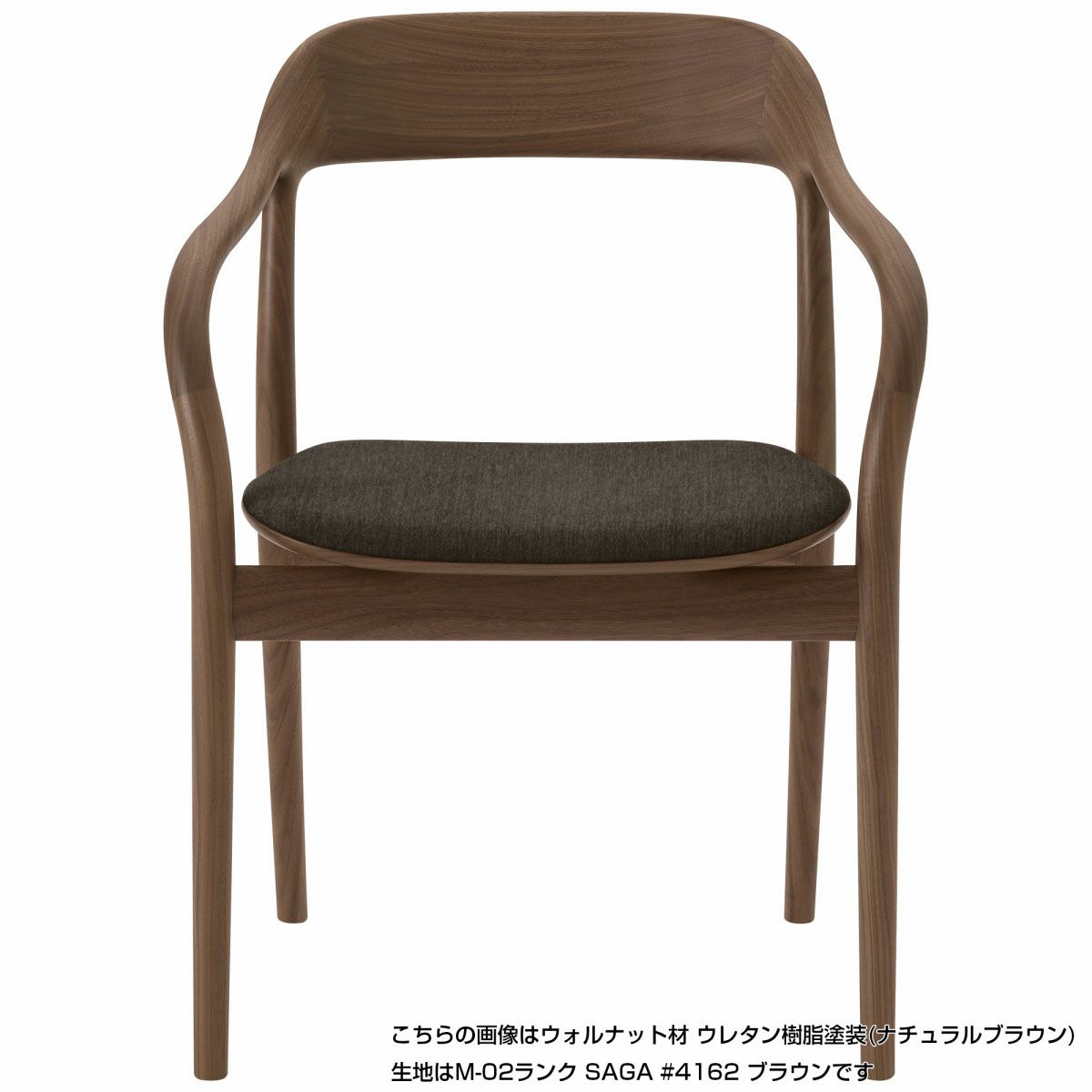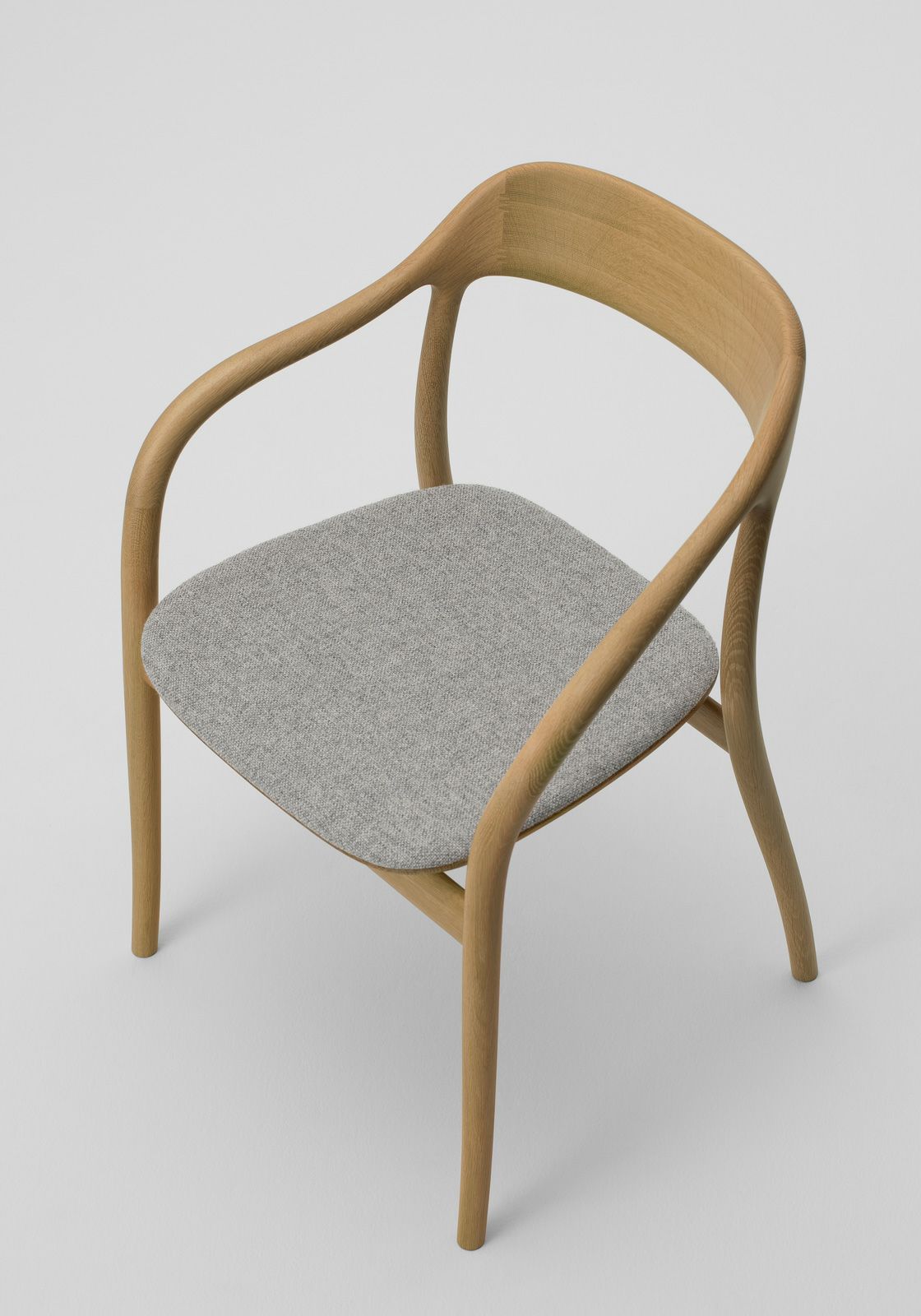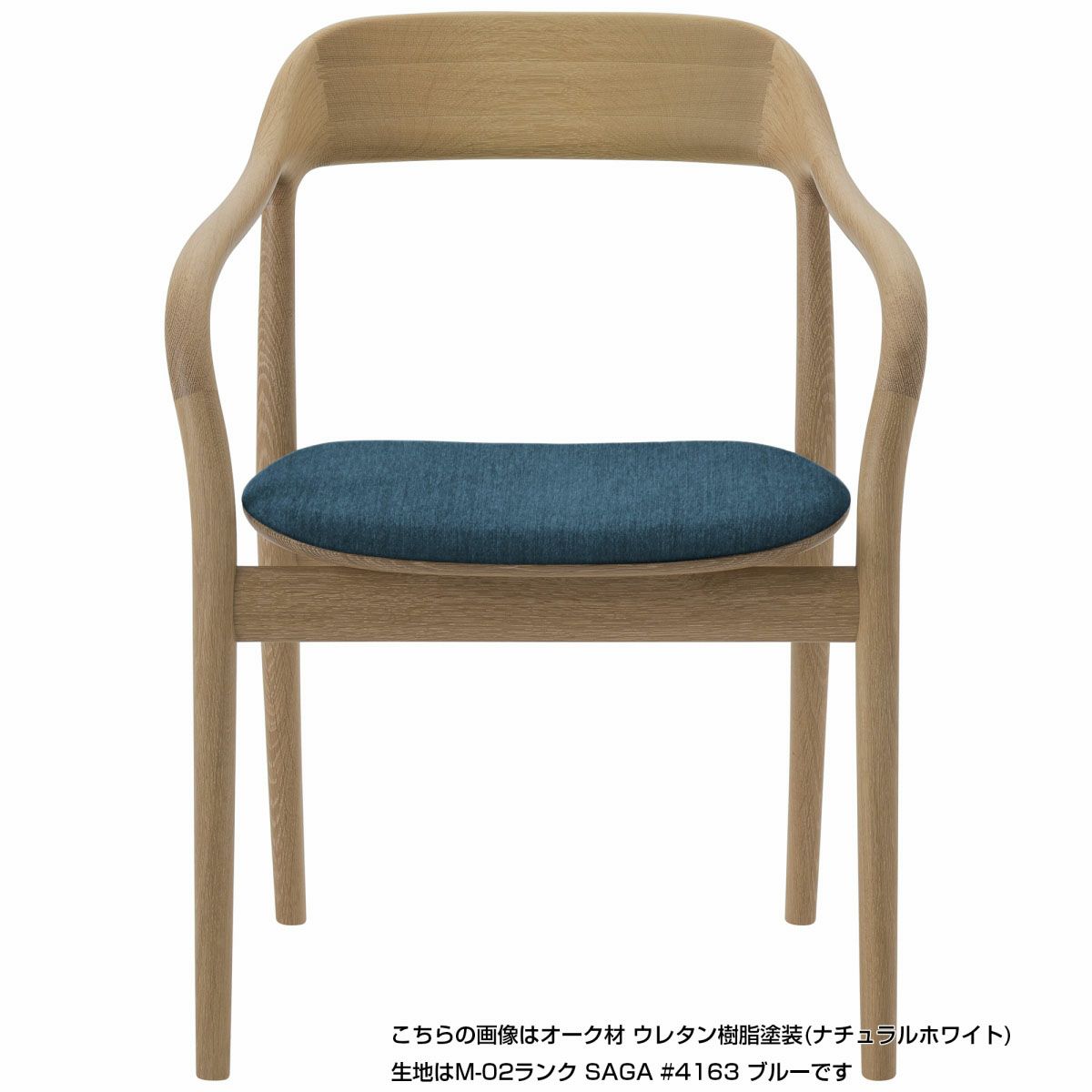 ゆとりのある広い座面と途切れのないなめらかなフレームは、ゆったりと包みこむように身体を支えます。ゆるやかに湾曲したアームはどの角度からも握りやすく、自然と手をそえたくなるような心地良さ。ダイニングシーンだけでなく、ワークスペースやくつろぎの場に置くパーソナルチェアとしてもおすすめのアイテムです。