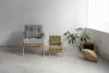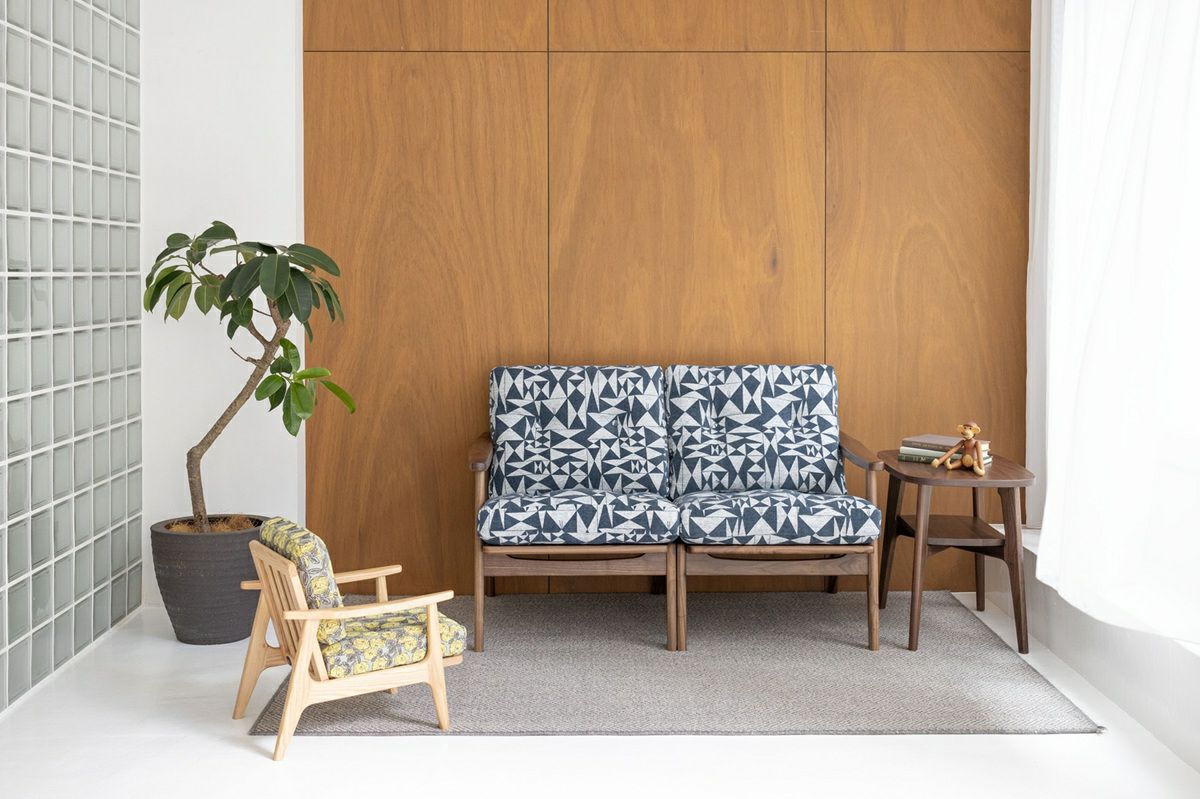 フレームチェア2シーターは、連結バンドで繋がず1シーターとして配置でき、アームレスタイプを買い足すことで、3シーターへと組み替えも可能。暮らしの変化に合わせて自由に組み合わせられるのも魅力です。