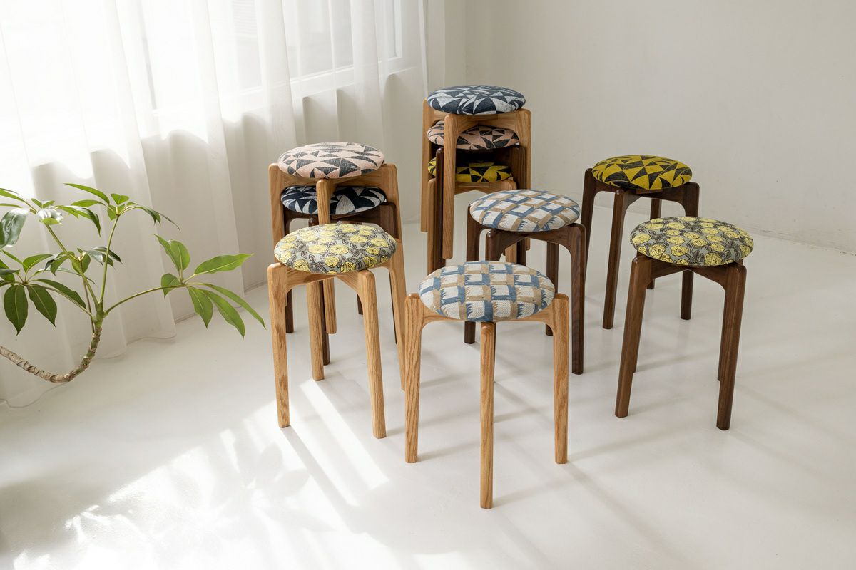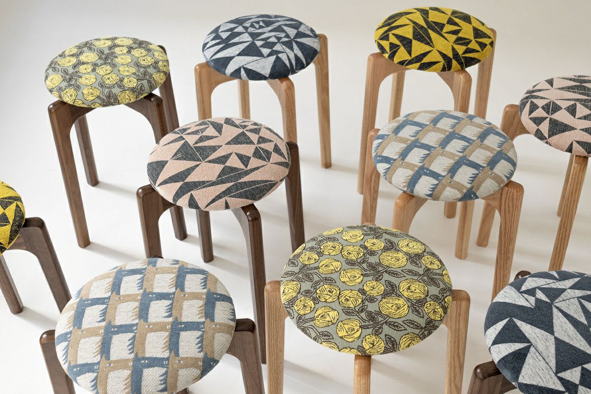 ジャガード織りのファブリック“rosy” “thoroughbred” “perhonen puzzle” を張った、特別仕様のMARUNI60です。