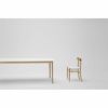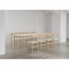 フレームにピンと張られた「メッシュシート」には、樹脂製の強固な素材を使用しています。身体の重みでわずかに沈み込む、底あたりのない快適な座り心地です。格子のすき間から光をわずかに通す白いシートは、木のやわらかい質感を引き締め、空間にほどよい緊張感をもたらします。