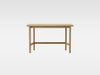 木材の温かみや風合いを感じられる無垢材のデスクです。 脚位置がハの字型になっていて、座わる側の脚間は広く、座らない側の脚間が少し狭いデザインで背面まで美しい佇まいが特徴です。 転び留めパネルや引出しがあるタイプと無いタイプからお選びいただけます。
