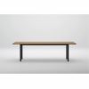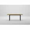 厚み30mmの天板を支えるスチール製の脚組は、艶をおさえたマットブラック色。木とスチール、対比された2つの異素材がそれぞれの美しさを引き立てています。 シンプルなパーツで構成された安定感のあるフォルムは、そのバランスに工夫をこらして 設計されています。どの椅子を合わせても調和がとれ、美しい空間をつくります。