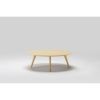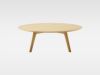 天板の滑らかな形が心地良い木製リビングテーブルです。 天板の縁の部分は削り落としているため、シャープな印象になっており、曲線ならではのやわらかさと軽快な雰囲気が魅力です。その佇まいは使い心地の良さと相まって、どこかホッとさせてくれる優しさがあります。