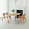 どこに触れても丸みの感じられるやわらかいフォルム。背板の曲がりと座板の輪郭は呼応するようにそろえられ、後ろから見た姿が特に美しい造形です。