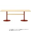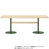 天板を左右で支えるスチール脚は木製のパーツでつなぎとめ、異素材をバランスよく組み上げたシンプルなテーブルです。天板下の空間が広くとられた設計で、脚間を気にせずチェアを配置できることも魅力の一つ。スチールはブラック・グリーン・レッドから選択可能。微細な凹凸をつけたマットなカラーは、木のやわらかい質感とよく合います。