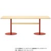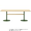 天板を左右で支えるスチール脚は木製のパーツでつなぎとめ、異素材をバランスよく組み上げたシンプルなテーブルです。天板下の空間が広くとられた設計で、脚間を気にせずチェアを配置できることも魅力の一つ。スチールはブラック・グリーン・レッドから選択可能。微細な凹凸をつけたマットなカラーは、木のやわらかい質感とよく合います。