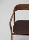 ゆとりのある広い座面と途切れのないなめらかなフレームは、ゆったりと包みこむように身体を支えます。ゆるやかに湾曲したアームはどの角度からも握りやすく、自然と手をそえたくなるような心地良さ。ダイニングシーンだけでなく、ワークスペースやくつろぎの場に置くパーソナルチェアとしてもおすすめのアイテムです。