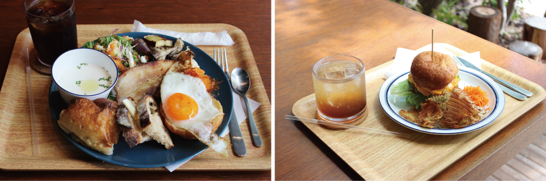 ランチプレートは目玉焼き、パン、手作りベーコン、ポタージュ、サラダなどがぎゅっと1皿にのったメニューです。一つ一つシンプルな料理ですが、素材の良さを最大限生かした味わいで、健康的でありながらしっかりとボリュームもあります。ベーカリーなのでパンも美味しく、特に人気No.1のきゅうこんパンは、程よい塩味で、半熟の目玉焼きと一緒に食べると美味しさが倍増しました。