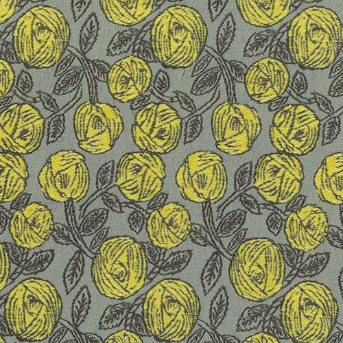 太い糸で手描きの筆跡をなぞるようにステッチを重ね、どこか牧歌的であたたかみのある印象に仕上げた、素朴でやさしい表情のバラのテキスタイルです。